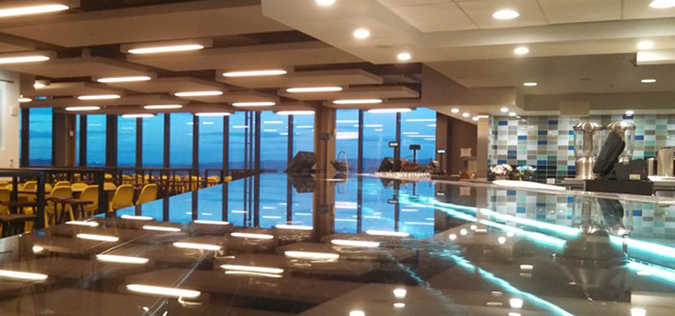 SEAGLASS Restaurant is a 200 seat venue located on the first level of the Observatory at the new Exploratorium on pier 15. The food and beverages offered at SEAGLASS are healthy and multicultural, and created with both adults and children in mind.